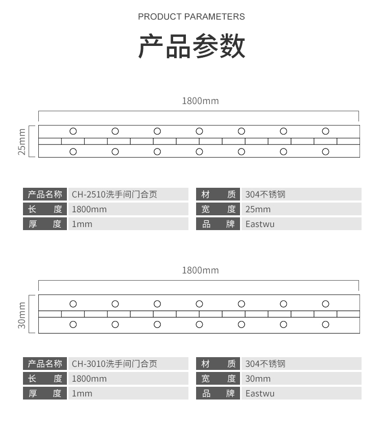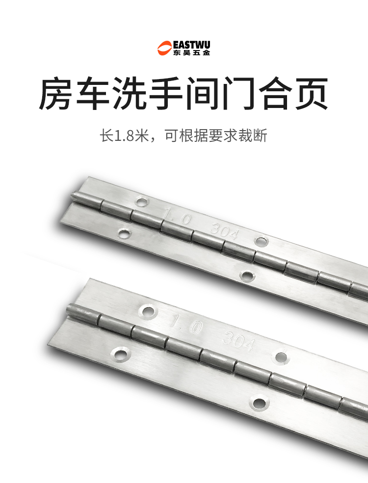 304不銹鋼長排合頁 1.0mm厚 使用范圍房車衛(wèi)生間門 開關(guān)輕盈 無異響 尺寸25X1800mm 30*1800mm