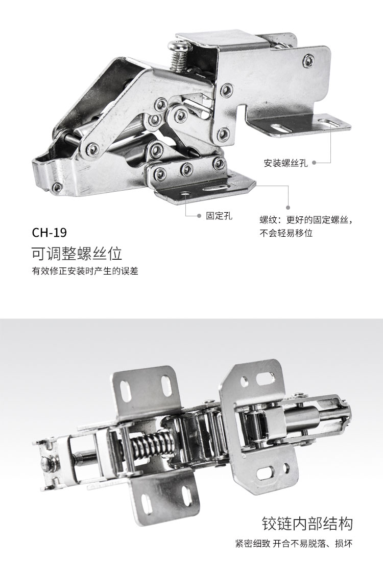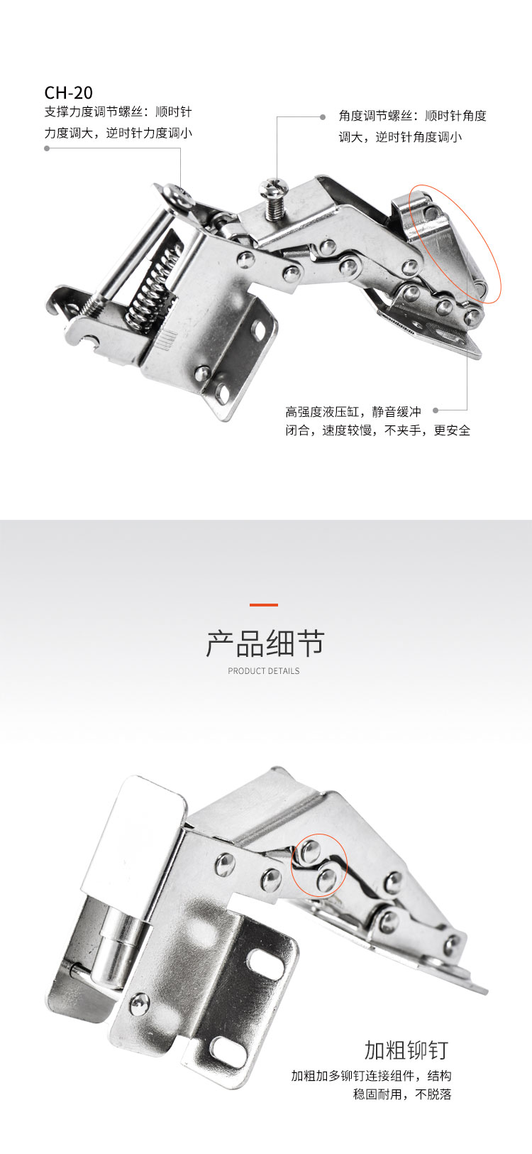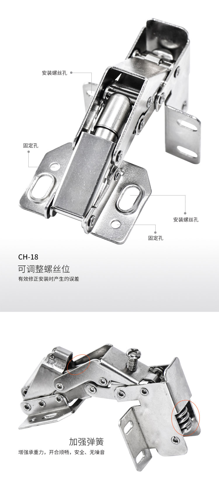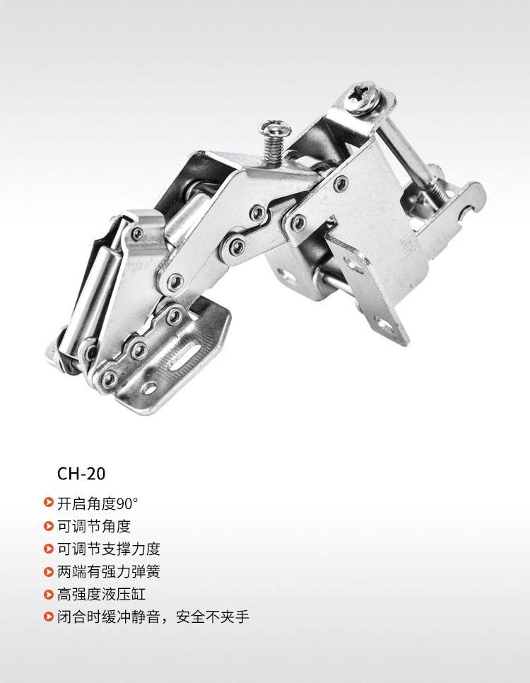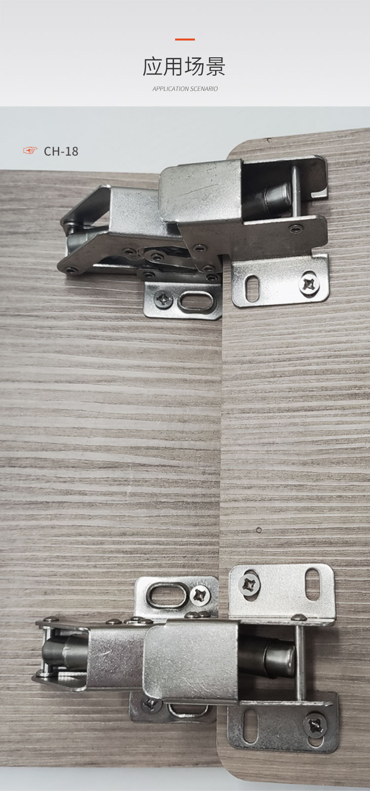 材質(zhì)冷軋鋼,鎳色,開(kāi)啟角度90°,適合門厚15-18mm,適用于90°轉(zhuǎn)角柜,層疊門板安裝,開(kāi)啟L型,帶調(diào)節(jié)力度和開(kāi)啟角度螺絲