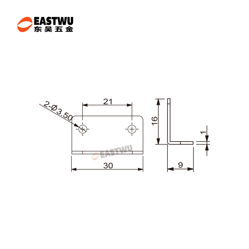 鎳色鐵金屬擋片 防撞擊 堅固耐用 尺寸30X16mm 孔距21mm