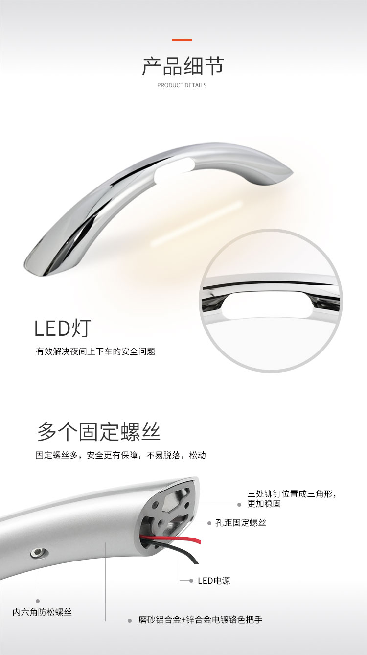 全金屬款上車門發(fā)光扶手,鋁合金&鋅合金材質(zhì),三色三尺寸可選,可裝門內(nèi)門外。..