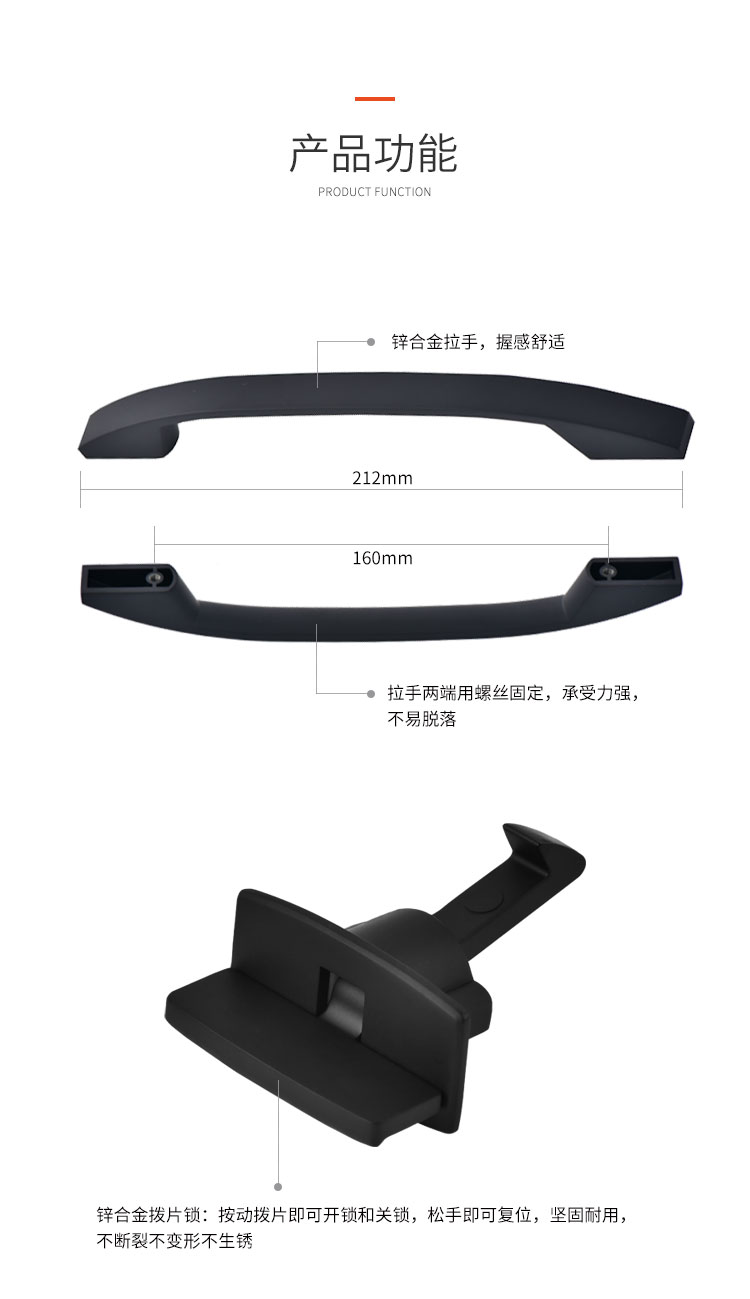 柜門拉手可配塑料搭扣鎖或金屬搭扣鎖,拉手和金屬搭扣鎖顏色可選,開孔尺寸?19mm 開關(guān)輕盈,手感舒適,外觀漂亮