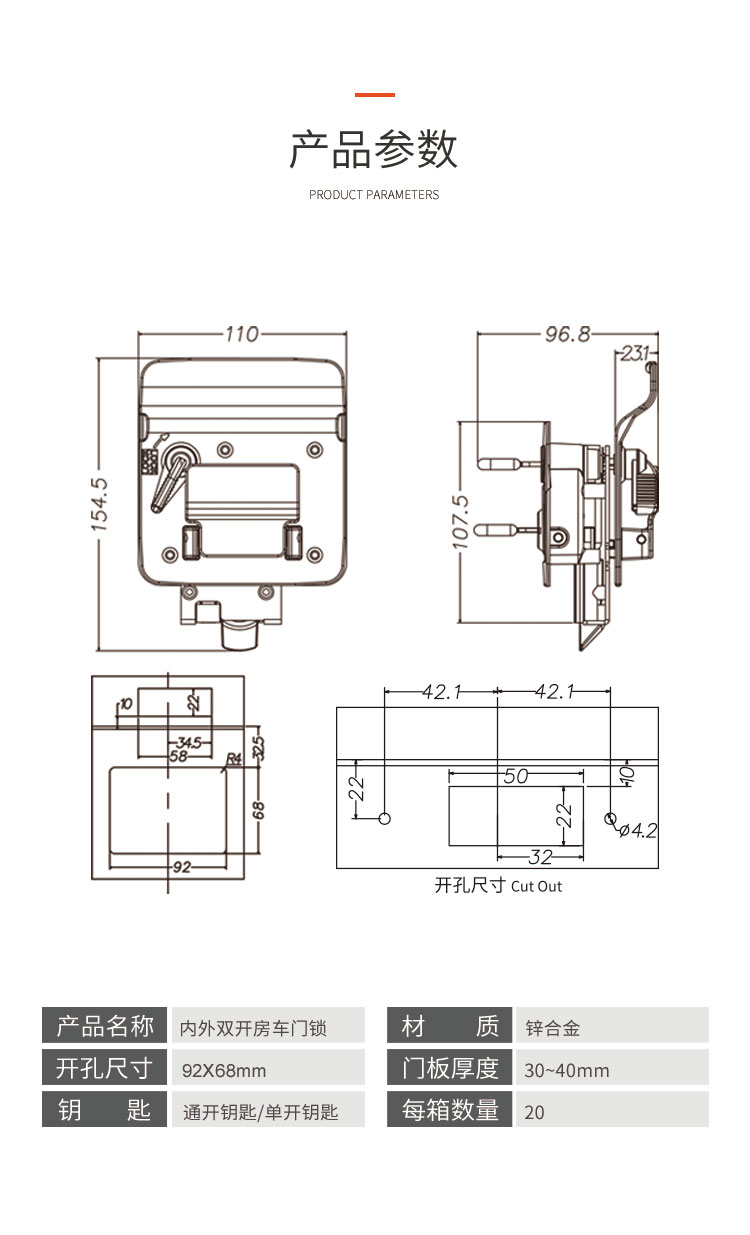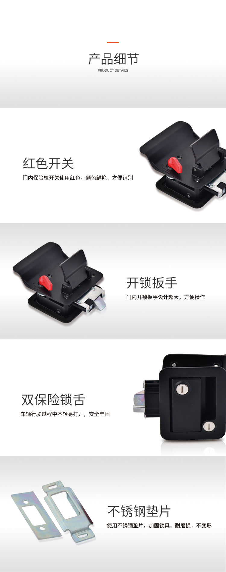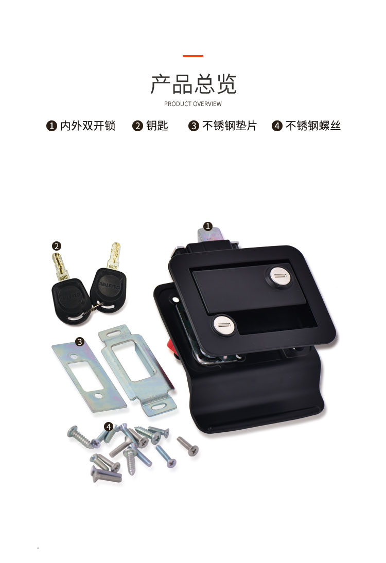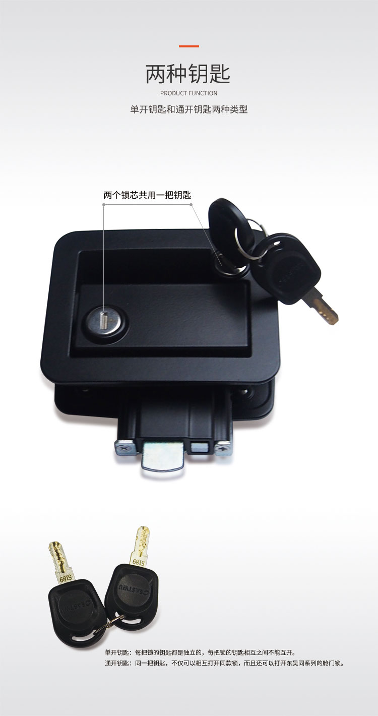 ·材質(zhì):鋅合金 ·鑰匙:可訂購分組鑰匙或與2991艙門鎖通開的鑰匙 ·配件:螺絲&擋片1鎖配2個(gè)鑰匙 ·開孔尺寸:92X68mm 兩種鑰匙,一種是通開鑰匙,一種是單開鑰匙,自由選擇,結(jié)構(gòu)牢固,
